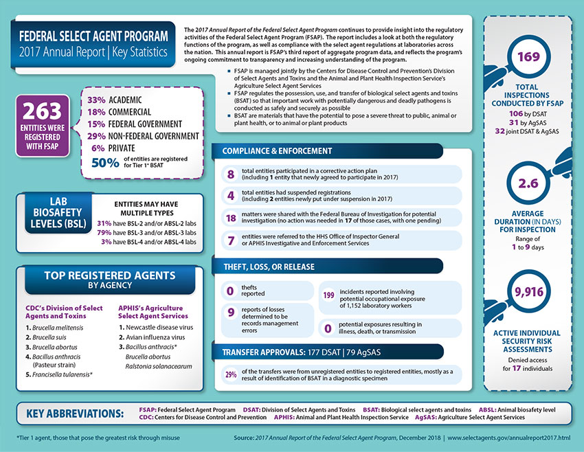 2017 Annual Report of the Federal Select Agent Program: Infographic of Findings